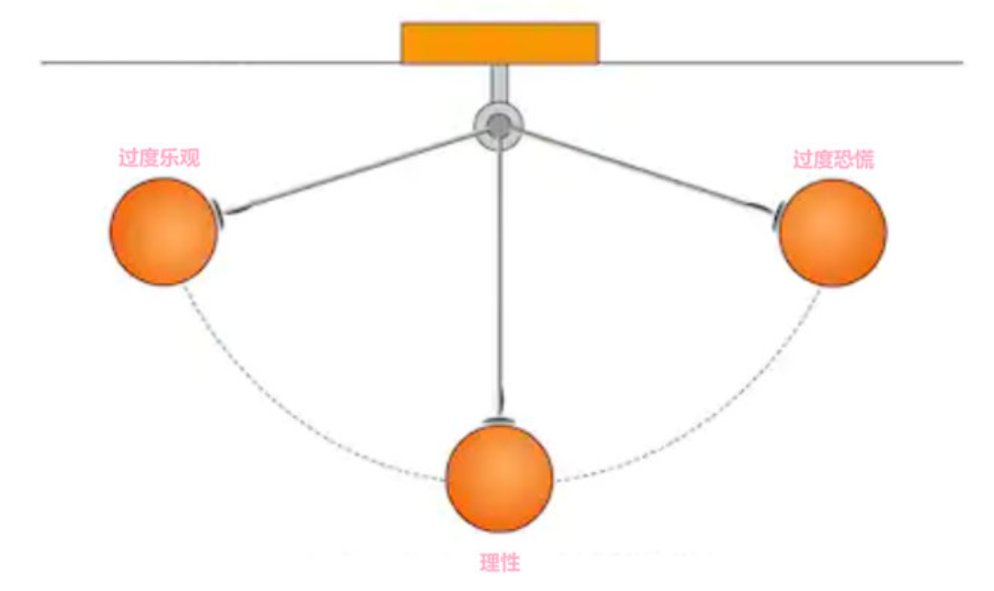 然而由于人们的思维过程,总是从过度乐观到过度恐慌中之间形成钟摆形式的摆动,并且总是在理性的底部一闪而过,因此我们无论是对待过度恐慌,还是对待过度乐观,都应该保持理性。